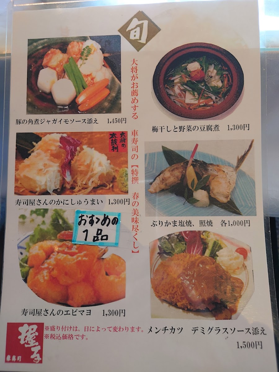 As a reviewer, the menu at Kuruma Sushi leaves a lasting impression with its balance of traditional flavors and careful presentation, offering a satisfying range from classic rolls to refined seasonal dishes. The 上寿司 stands out as a highlight, showcasing a carefully selected assortment of fresh fish with clean flavors and precise technique, while the 太巻き offers a more comforting, well-balanced roll filled with a variety of ingredients that create a pleasant mix of textures. For those who enjoy richer flavors, the トロ鉄火巻き delivers with its melt-in-your-mouth fatty tuna, making it one of the most memorable items on the menu. Beyond sushi, the 酢牡蠣 provides a refreshing contrast with its light acidity and clean ocean taste, adding variety to the dining experience. To finish, the 抹茶のアイスクリーム is a simple but satisfying dessert, with a smooth texture and gentle bitterness that nicely complements the savory courses. Overall, the menu reflects a thoughtful selection of both classic and slightly indulgent dishes, making it a well-rounded dining experience that feels both authentic and carefully curated.